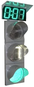 Сигнал светофора, время свечения которого отсчитывает табло |